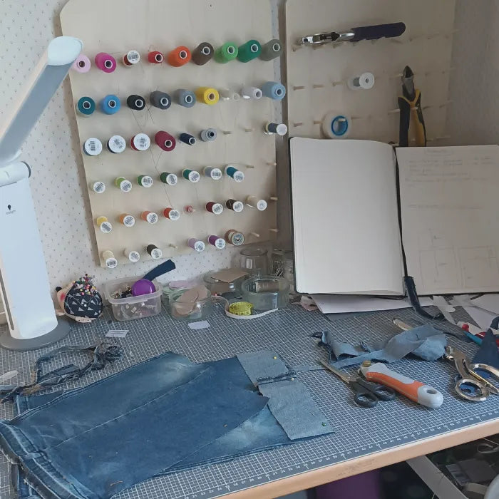 Chaque pièce est confectionnée à la main avec amour, dans mon atelier. Un savoir-faire authentique pour des créations uniques et durables.